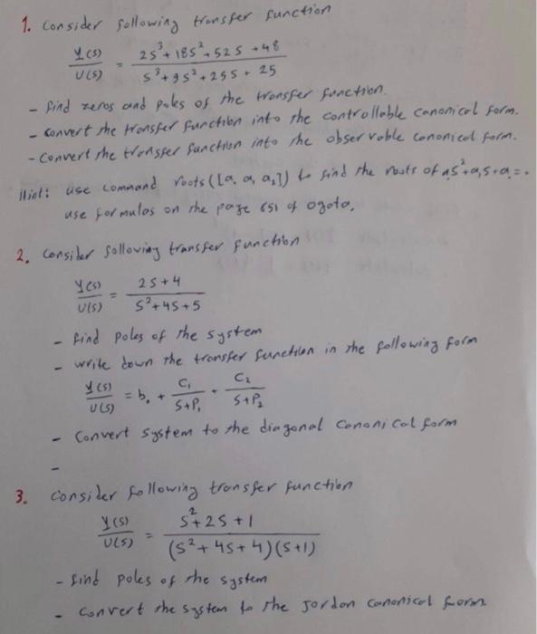 Solved 1 Consider Following Transfer Function 10 25 Chegg Com